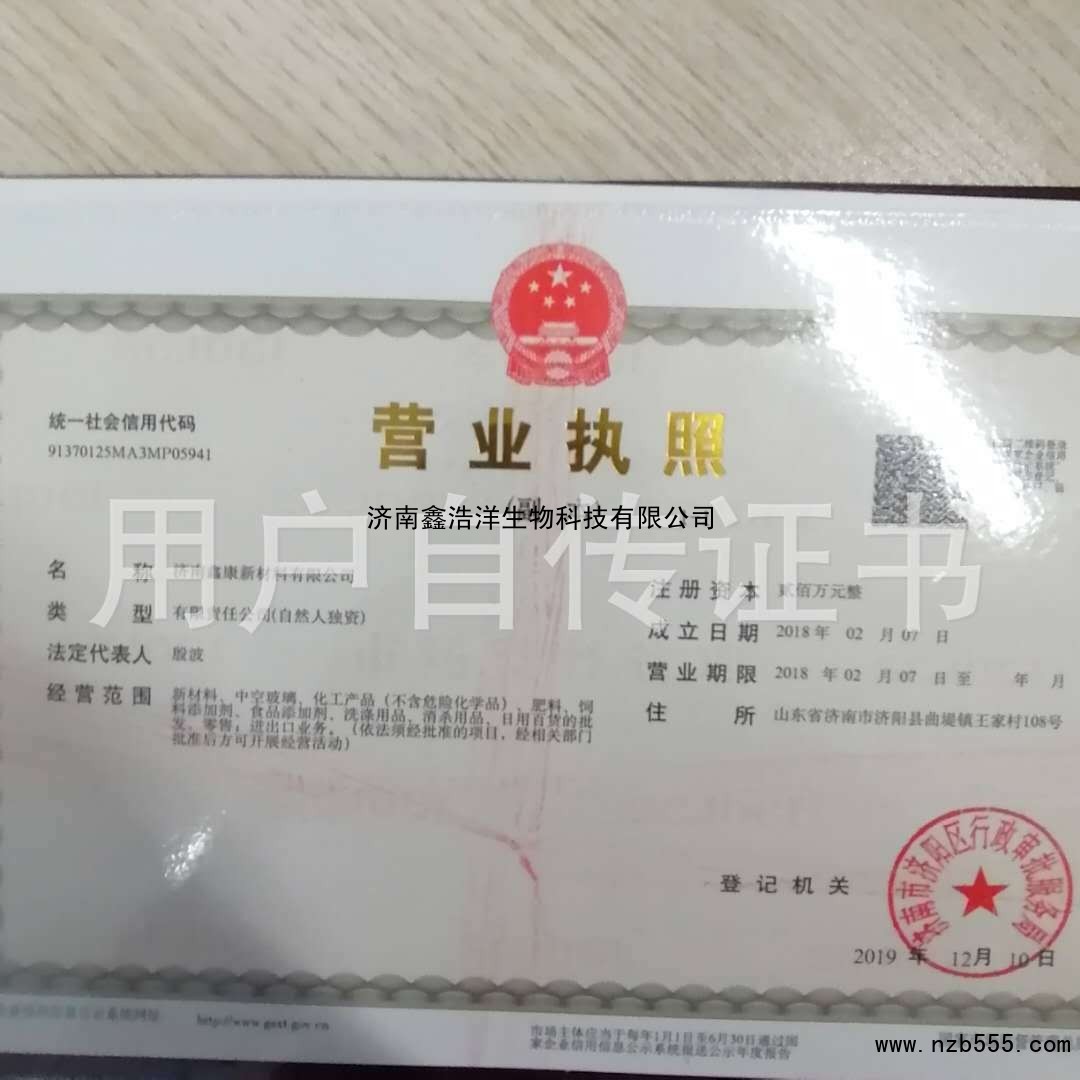 榮譽(yù)資質(zhì) 濟(jì)南鑫浩洋生物科技有限公司