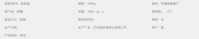 奧若美干果 玫瑰香葡萄干 1000g