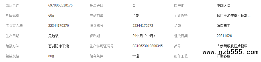 哈醫集正人參苦瓜肽苦瓜活胰素壓片60g工廠招商批發